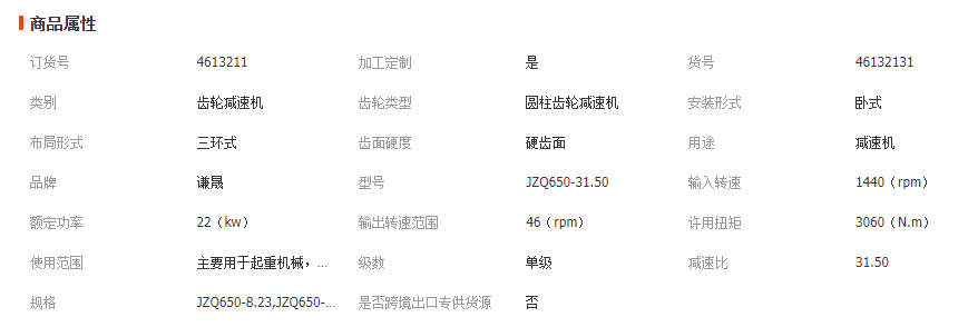 JZQ系列减速机总中心距为500mm,速比i=40.17(这里我们说的是实际传动比,zq减速机公称传动比与实际传动比对照见下表),装配形式为第II中,输出轴为C齿轮型,具体型号标记为: