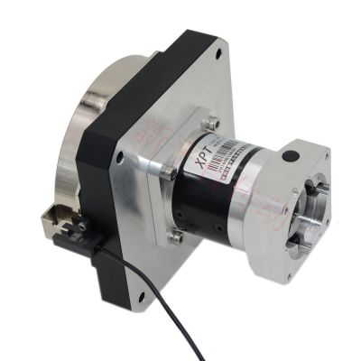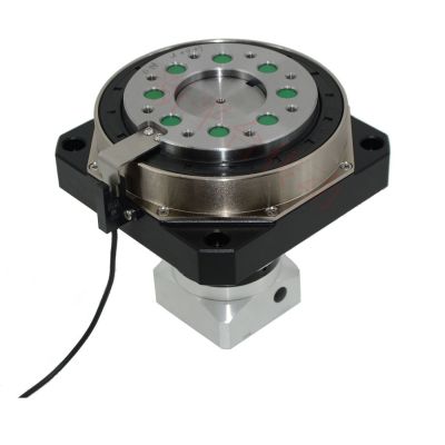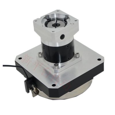 公司所生产的伺服旋转工作台均采用行星减速结构来增加传动力矩,减速比从3至1536,传动力矩高达2400NM,公司由此结构的伺服旋转平台具有低侧隙,低噪音,大传动力矩的特点,适用于速度,力矩有各种要求的场合。