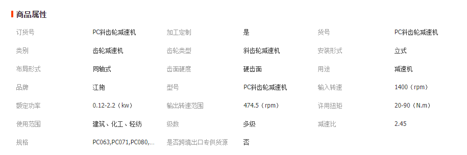 本网页所展示的有关【现货供应PC斜齿轮减速机硬齿面速度转换立式减速机前置小型减速机_液压减速机_台州市椒江江拖减速机有限公司】的信息/图片/参数等由全球零部件网的会员【台州市椒江江拖减速机有限公司】提供,由全球零部件网会员【台州市椒江江拖减速机有限公司】自行对信息/图片/参数等的真实性、准确性和合法性负责,本平台(本网站)仅提供展示服务,请谨慎交易,因交易而产生的法律关系及法律纠纷由您自行协商解决,本平台(本网站)对此不承担任何责任。您在本网页可以浏览【现货供应PC斜齿轮减速机硬齿面速度转换立式减速机前置小型减速机_液压减速机_台州市椒江江拖减速机有限公司】有关的信息/图片/价格等及提供【现货供应PC斜齿轮减速机硬齿面速度转换立式减速机前置小型减速机_液压减速机_台州市椒江江拖减速机有限公司】的商家公司简介、江南(中国)等信息。