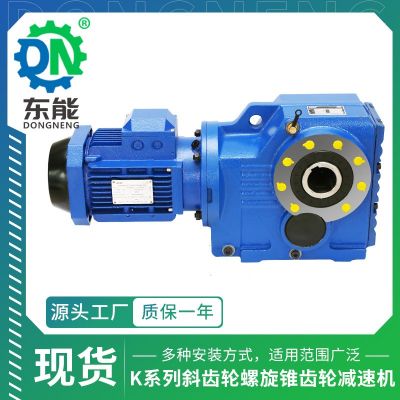 K系列斜齿轮螺旋锥齿轮减速机,具有体积小,重量轻,传递转矩大,性能优越等特点,是一种新型减速传动装置。在模块化组合的基础上,采用优化设计与制造,能满足用户要求进行任意连接方式和多种安装位置的选择,本厂采用优化组合后能在较短时间内交货。