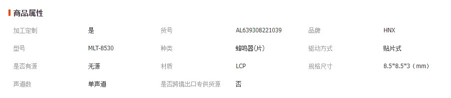 本网页所展示的有关【厂家直供通用款MLT-8530贴片式无源3V5V高品质蜂鸣器医疗专用_蜂鸣器_深圳市华能旭电子科技有限公司】的信息/图片/参数等由全球零部件网的会员【深圳市华能旭电子科技有限公司】提供,由全球零部件网会员【深圳市华能旭电子科技有限公司】自行对信息/图片/参数等的真实性、准确性和合法性负责,本平台(本网站)仅提供展示服务,请谨慎交易,因交易而产生的法律关系及法律纠纷由您自行协商解决,本平台(本网站)对此不承担任何责任。您在本网页可以浏览【厂家直供通用款MLT-8530贴片式无源3V5V高品质蜂鸣器医疗专用_蜂鸣器_深圳市华能旭电子科技有限公司】有关的信息/图片/价格等及提供【厂家直供通用款MLT-8530贴片式无源3V5V高品质蜂鸣器医疗专用_蜂鸣器_深圳市华能旭电子科技有限公司】的商家公司简介、江南(中国)等信息。