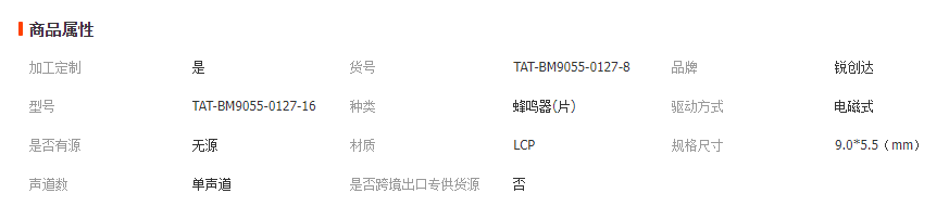 本网页所展示的有关【TAT 热销 质优蜂鸣器电磁式无源蜂鸣器9.0*5.5mm1v2.7khz8欧姆_蜂鸣器_深圳市锐创达电子有限公司】的信息/图片/参数等由全球零部件网的会员【深圳市锐创达电子有限公司】提供,由全球零部件网会员【深圳市锐创达电子有限公司】自行对信息/图片/参数等的真实性、准确性和合法性负责,本平台(本网站)仅提供展示服务,请谨慎交易,因交易而产生的法律关系及法律纠纷由您自行协商解决,本平台(本网站)对此不承担任何责任。您在本网页可以浏览【TAT 热销 质优蜂鸣器电磁式无源蜂鸣器9.0*5.5mm1v2.7khz8欧姆_蜂鸣器_深圳市锐创达电子有限公司】有关的信息/图片/价格等及提供【TAT 热销 质优蜂鸣器电磁式无源蜂鸣器9.0*5.5mm1v2.7khz8欧姆_蜂鸣器_深圳市锐创达电子有限公司】的商家公司简介、江南(中国)等信息。