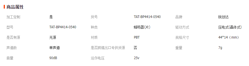 本网页所展示的有关【TAT-BP4414 现货供应 25v 1300hz >90dB 压电式无源蜂鸣器_蜂鸣器_深圳市锐创达电子有限公司】的信息/图片/参数等由全球零部件网的会员【深圳市锐创达电子有限公司】提供,由全球零部件网会员【深圳市锐创达电子有限公司】自行对信息/图片/参数等的真实性、准确性和合法性负责,本平台(本网站)仅提供展示服务,请谨慎交易,因交易而产生的法律关系及法律纠纷由您自行协商解决,本平台(本网站)对此不承担任何责任。您在本网页可以浏览【TAT-BP4414 现货供应 25v 1300hz >90dB 压电式无源蜂鸣器_蜂鸣器_深圳市锐创达电子有限公司】有关的信息/图片/价格等及提供【TAT-BP4414 现货供应 25v 1300hz >90dB 压电式无源蜂鸣器_蜂鸣器_深圳市锐创达电子有限公司】的商家公司简介、江南(中国)等信息。