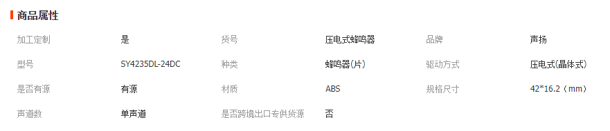 本网页所展示的有关【24V带耳压电式蜂鸣器连续声报警器汽车倒车讯响器有源带线警报器_蜂鸣器_深圳市声扬电子有限公司】的信息/图片/参数等由全球零部件网的会员【深圳市声扬电子有限公司】提供,由全球零部件网会员【深圳市声扬电子有限公司】自行对信息/图片/参数等的真实性、准确性和合法性负责,本平台(本网站)仅提供展示服务,请谨慎交易,因交易而产生的法律关系及法律纠纷由您自行协商解决,本平台(本网站)对此不承担任何责任。您在本网页可以浏览【24V带耳压电式蜂鸣器连续声报警器汽车倒车讯响器有源带线警报器_蜂鸣器_深圳市声扬电子有限公司】有关的信息/图片/价格等及提供【24V带耳压电式蜂鸣器连续声报警器汽车倒车讯响器有源带线警报器_蜂鸣器_深圳市声扬电子有限公司】的商家公司简介、江南(中国)等信息。