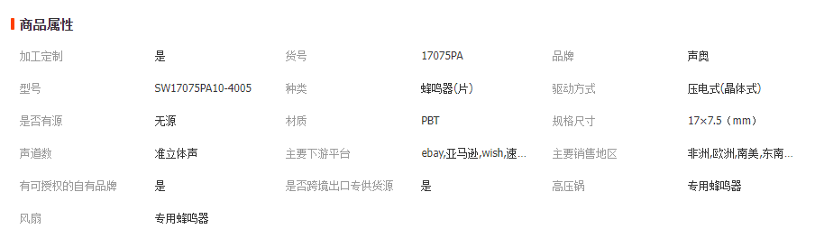 本网页所展示的有关【直径17压电无源蜂鸣器 电磁炉用蜂鸣器 高压锅蜂鸣器 1707蜂鸣器_蜂鸣器_中山市声奥电子有限公司】的信息/图片/参数等由全球零部件网的会员【中山市声奥电子有限公司】提供,由全球零部件网会员【中山市声奥电子有限公司】自行对信息/图片/参数等的真实性、准确性和合法性负责,本平台(本网站)仅提供展示服务,请谨慎交易,因交易而产生的法律关系及法律纠纷由您自行协商解决,本平台(本网站)对此不承担任何责任。您在本网页可以浏览【直径17压电无源蜂鸣器 电磁炉用蜂鸣器 高压锅蜂鸣器 1707蜂鸣器_蜂鸣器_中山市声奥电子有限公司】有关的信息/图片/价格等及提供【直径17压电无源蜂鸣器 电磁炉用蜂鸣器 高压锅蜂鸣器 1707蜂鸣器_蜂鸣器_中山市声奥电子有限公司】的商家公司简介、江南(中国)等信息。