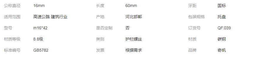 本网页所展示的有关【高速专用护栏螺丝 热镀锌桥梁防盗螺栓 AB防盗护兰丝 奇帆现货_螺栓_河北奇帆紧固件制造有限公司】的信息/图片/参数等由全球零部件网的会员【河北奇帆紧固件制造有限公司】提供,由全球零部件网会员【河北奇帆紧固件制造有限公司】自行对信息/图片/参数等的真实性、准确性和合法性负责,本平台(本网站)仅提供展示服务,请谨慎交易,因交易而产生的法律关系及法律纠纷由您自行协商解决,本平台(本网站)对此不承担任何责任。您在本网页可以浏览【高速专用护栏螺丝 热镀锌桥梁防盗螺栓 AB防盗护兰丝 奇帆现货_螺栓_河北奇帆紧固件制造有限公司】有关的信息/图片/价格等及提供【高速专用护栏螺丝 热镀锌桥梁防盗螺栓 AB防盗护兰丝 奇帆现货_螺栓_河北奇帆紧固件制造有限公司】的商家公司简介、江南(中国)等信息。