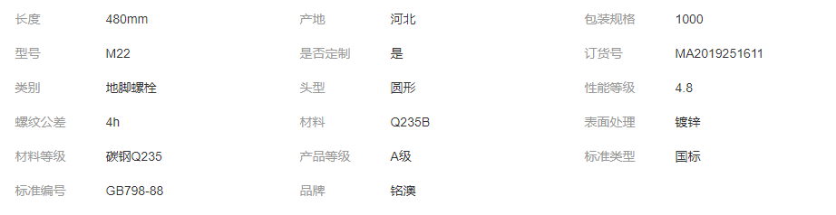 本网页所展示的有关【7字地脚螺栓 L型焊接螺丝 机械工业紧固件 支持加工定制地脚丝_螺栓_邯郸市铭澳紧固件制造有限公司】的信息/图片/参数等由全球零部件网的会员【邯郸市铭澳紧固件制造有限公司】提供,由全球零部件网会员【邯郸市铭澳紧固件制造有限公司】自行对信息/图片/参数等的真实性、准确性和合法性负责,本平台(本网站)仅提供展示服务,请谨慎交易,因交易而产生的法律关系及法律纠纷由您自行协商解决,本平台(本网站)对此不承担任何责任。您在本网页可以浏览【7字地脚螺栓 L型焊接螺丝 机械工业紧固件 支持加工定制地脚丝_螺栓_邯郸市铭澳紧固件制造有限公司】有关的信息/图片/价格等及提供【7字地脚螺栓 L型焊接螺丝 机械工业紧固件 支持加工定制地脚丝_螺栓_邯郸市铭澳紧固件制造有限公司】的商家公司简介、江南(中国)等信息。