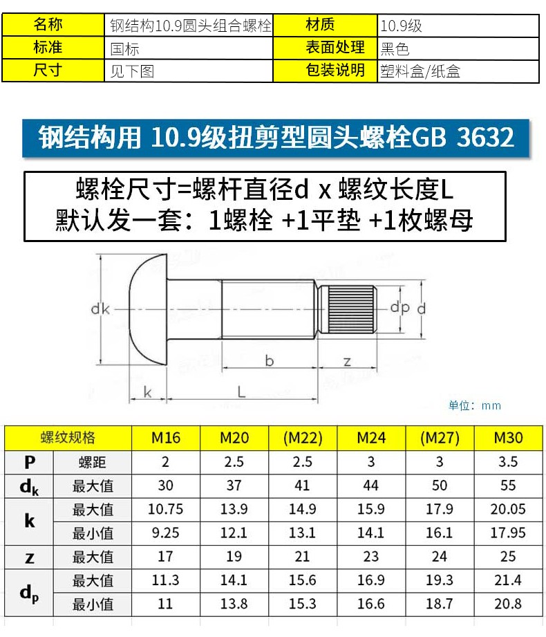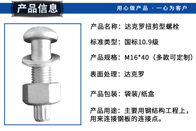 本网页所展示的有关【扭剪型螺栓高强度达克罗 10.9S级钢结构半螺纹圆头连接副_螺栓_邯郸市铭澳紧固件制造有限公司】的信息/图片/参数等由全球零部件网的会员【邯郸市铭澳紧固件制造有限公司】提供,由全球零部件网会员【邯郸市铭澳紧固件制造有限公司】自行对信息/图片/参数等的真实性、准确性和合法性负责,本平台(本网站)仅提供展示服务,请谨慎交易,因交易而产生的法律关系及法律纠纷由您自行协商解决,本平台(本网站)对此不承担任何责任。您在本网页可以浏览【扭剪型螺栓高强度达克罗 10.9S级钢结构半螺纹圆头连接副_螺栓_邯郸市铭澳紧固件制造有限公司】有关的信息/图片/价格等及提供【扭剪型螺栓高强度达克罗 10.9S级钢结构半螺纹圆头连接副_螺栓_邯郸市铭澳紧固件制造有限公司】的商家公司简介、江南(中国)等信息。