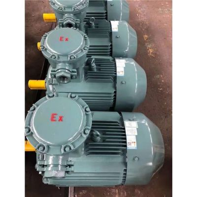 防爆电机,我国当前广泛应用的低压隔爆型电机产品的基本系列是YB系列隔爆型三相异步电机,它是Y系列(IP44)三相异步电机的派生产品。防爆性能符合GB3836.1—83《爆炸性环境用防爆电气设备通用要求》和GB3836.2—83《爆炸性环境用防爆电气设备隔爆型电气设备》的规定;电机功率范围为0.55—200kW,相对应的机座号范围是机座中心高为80—315nun;防爆标志为dI、dIIAT4、dIIBT4,分别适用于煤矿井下固定式设备或工厂IIA、IIB级,温度组别为T1—T4组的可燃性气体或蒸气与空气形成的爆炸性混合物的场所;主体外壳防护等级为IP44,也可制成IP%4,接线盒防护等级为IP;额定频率为50Hz,额定电压为380、1660、1140、380/660、660/140V;电机绝缘等级为F级,但按B级考核定子绕组的温升,具有较大的温升裕度。低压隔爆型三相异步电机派生系列的主要型号有:YB系列(dIIcT4)(机座中心高为80—315),YBSO系列(小功率,机座中心高为63—90),YBF系列(风机用,机座中心高为63—160),YB—H系列(船用,机座中心高为80~280),YB系列(中型,机座中心高为355—450),YBK系列(煤矿用,机座中心高为100—315),YB—W、B—TH、YB—WTH系列(机座中心高为80—315),YBDF—WF系列(户外防腐隔爆型电动阀门用,机座中心高为80—315)及YBDC系列(隔爆型电容起动单相异步电机,机座中心高为71—100)和YBZS系列起重用隔爆型双速三相异步电机。另外,还有YB系列高压隔爆型三相异步电机(机座中心高为355~450,560—710)。行业联合设计的YB2系列已于1四年底通过了全国,将逐步取代YB系列,成为我国隔爆型三相异步电机的基本系列。YB2系列共15个机座号(机座中心高为63、355nmm),功率范围为0.12—315kW 。