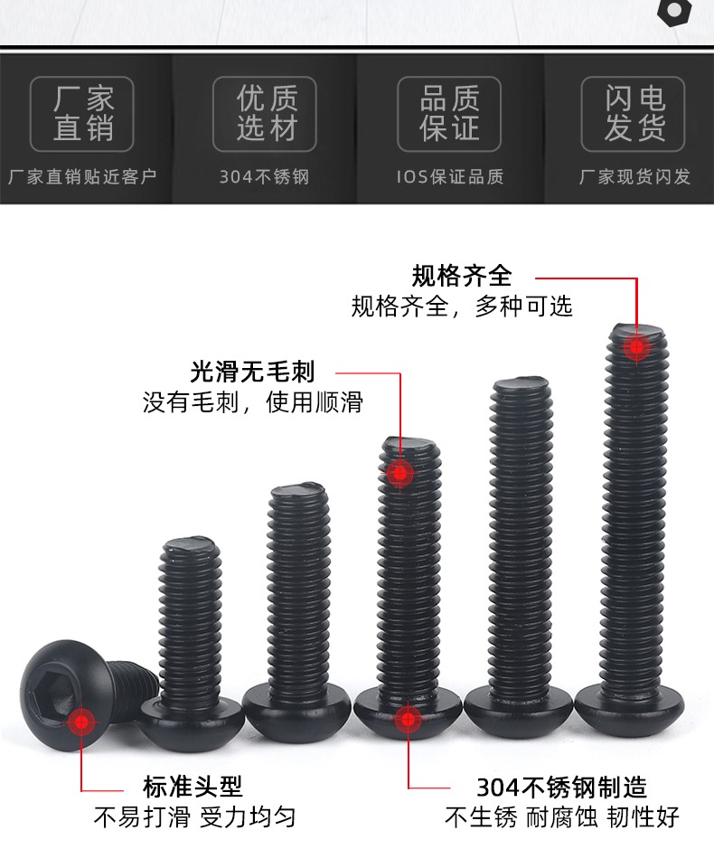 本网页所展示的有关【10.9级圆头内六角螺丝盘头内六角螺栓高强度黑色圆杯M2M3 M4M5-M12_螺栓_深圳市伟粤紧固件有限公司】的信息/图片/参数等由全球零部件网的会员【深圳市伟粤紧固件有限公司】提供,由全球零部件网会员【深圳市伟粤紧固件有限公司】自行对信息/图片/参数等的真实性、准确性和合法性负责,本平台(本网站)仅提供展示服务,请谨慎交易,因交易而产生的法律关系及法律纠纷由您自行协商解决,本平台(本网站)对此不承担任何责任。您在本网页可以浏览【10.9级圆头内六角螺丝盘头内六角螺栓高强度黑色圆杯M2M3 M4M5-M12_螺栓_深圳市伟粤紧固件有限公司】有关的信息/图片/价格等及提供【10.9级圆头内六角螺丝盘头内六角螺栓高强度黑色圆杯M2M3 M4M5-M12_螺栓_深圳市伟粤紧固件有限公司】的商家公司简介、江南(中国)等信息。