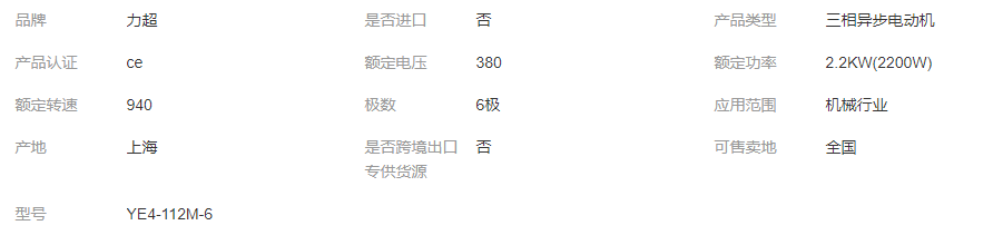 本网页所展示的有关【力超机械行业三相异步电动机YE460HZ防爆电机_交流电机_上海力超电机有限公司】的信息/图片/参数等由全球零部件网的会员【上海力超电机有限公司】提供,由全球零部件网会员【上海力超电机有限公司】自行对信息/图片/参数等的真实性、准确性和合法性负责,本平台(本网站)仅提供展示服务,请谨慎交易,因交易而产生的法律关系及法律纠纷由您自行协商解决,本平台(本网站)对此不承担任何责任。您在本网页可以浏览【力超机械行业三相异步电动机YE460HZ防爆电机_交流电机_上海力超电机有限公司】有关的信息/图片/价格等及提供【力超机械行业三相异步电动机YE460HZ防爆电机_交流电机_上海力超电机有限公司】的商家公司简介、江南(中国)等信息。