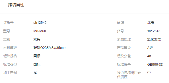 本网页所展示的有关【厂家定制 双头螺栓 高强度双头螺丝 双头螺杆丝杆 发黑双头螺栓_螺栓_邯郸市沈宏紧固件制造有限公司】的信息/图片/参数等由全球零部件网的会员【邯郸市沈宏紧固件制造有限公司】提供,由全球零部件网会员【邯郸市沈宏紧固件制造有限公司】自行对信息/图片/参数等的真实性、准确性和合法性负责,本平台(本网站)仅提供展示服务,请谨慎交易,因交易而产生的法律关系及法律纠纷由您自行协商解决,本平台(本网站)对此不承担任何责任。您在本网页可以浏览【厂家定制 双头螺栓 高强度双头螺丝 双头螺杆丝杆 发黑双头螺栓_螺栓_邯郸市沈宏紧固件制造有限公司】有关的信息/图片/价格等及提供【厂家定制 双头螺栓 高强度双头螺丝 双头螺杆丝杆 发黑双头螺栓_螺栓_邯郸市沈宏紧固件制造有限公司】的商家公司简介、江南(中国)等信息。