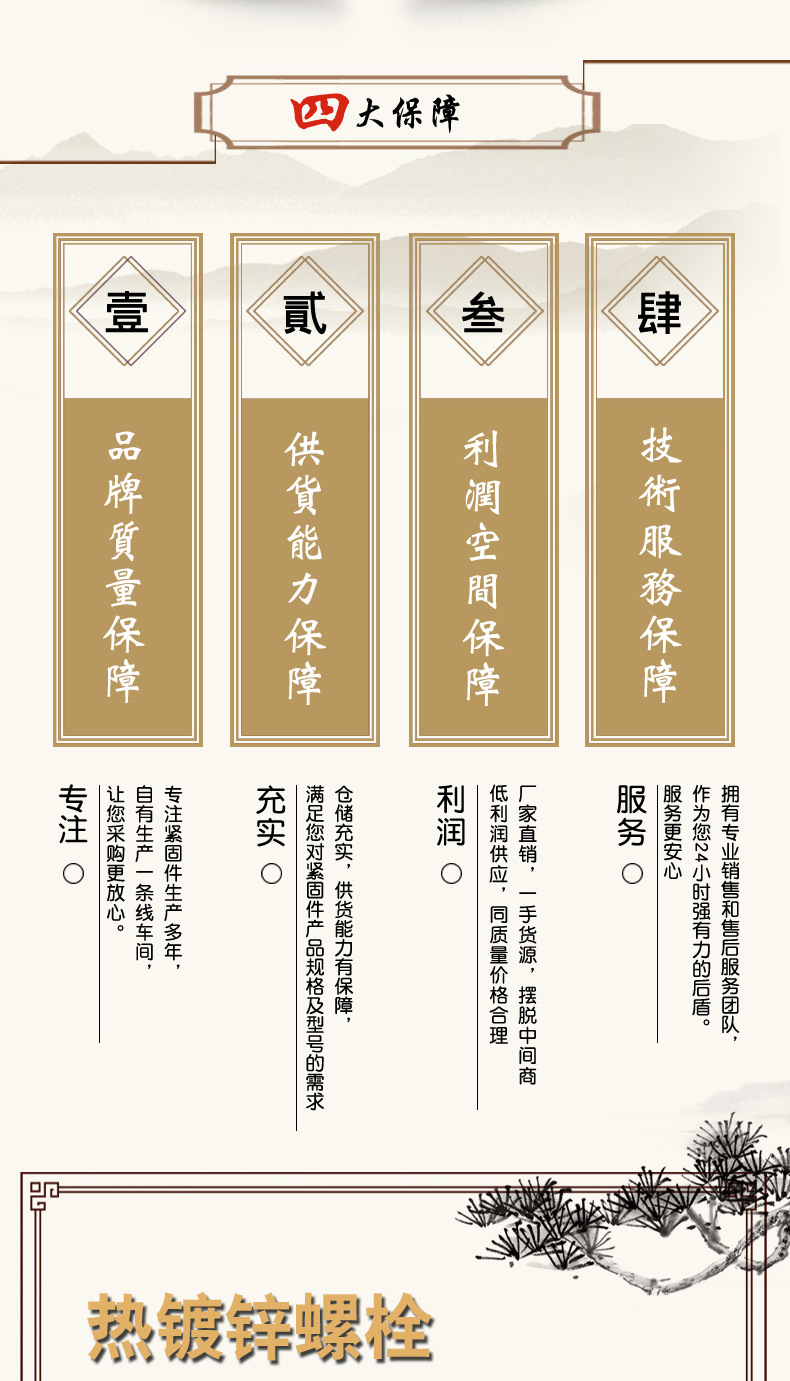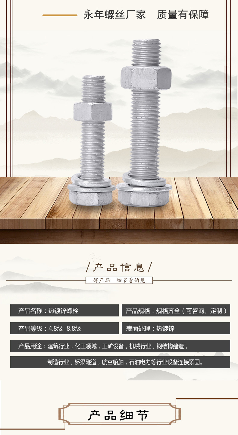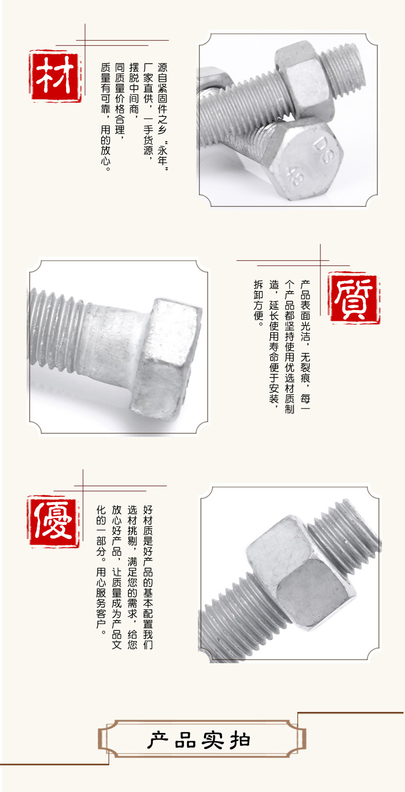 本网页所展示的有关【厂家供应 热镀锌螺栓螺丝热渗锌螺栓高强度4.8级热镀锌外六角螺丝_螺栓_河北精拓轴承科技有限公司】的信息/图片/参数等由全球零部件网的会员【河北精拓轴承科技有限公司】提供,由全球零部件网会员【河北精拓轴承科技有限公司】自行对信息/图片/参数等的真实性、准确性和合法性负责,本平台(本网站)仅提供展示服务,请谨慎交易,因交易而产生的法律关系及法律纠纷由您自行协商解决,本平台(本网站)对此不承担任何责任。您在本网页可以浏览【厂家供应 热镀锌螺栓螺丝热渗锌螺栓高强度4.8级热镀锌外六角螺丝_螺栓_河北精拓轴承科技有限公司】有关的信息/图片/价格等及提供【厂家供应 热镀锌螺栓螺丝热渗锌螺栓高强度4.8级热镀锌外六角螺丝_螺栓_河北精拓轴承科技有限公司】的商家公司简介、江南(中国)等信息。