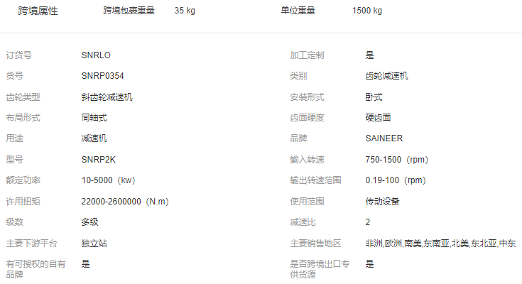 本网页所展示的有关【回转液压马达P2KBH10行星齿轮减速器 卧式硬齿面减速机厂家定制_液压减速机_湖北赛尼尔机械制造股份有限公司】的信息/图片/参数等由全球零部件网的会员【湖北赛尼尔机械制造股份有限公司】提供,由全球零部件网会员【湖北赛尼尔机械制造股份有限公司】自行对信息/图片/参数等的真实性、准确性和合法性负责,本平台(本网站)仅提供展示服务,请谨慎交易,因交易而产生的法律关系及法律纠纷由您自行协商解决,本平台(本网站)对此不承担任何责任。您在本网页可以浏览【回转液压马达P2KBH10行星齿轮减速器 卧式硬齿面减速机厂家定制_液压减速机_湖北赛尼尔机械制造股份有限公司】有关的信息/图片/价格等及提供【回转液压马达P2KBH10行星齿轮减速器 卧式硬齿面减速机厂家定制_液压减速机_湖北赛尼尔机械制造股份有限公司】的商家公司简介、江南(中国)等信息。