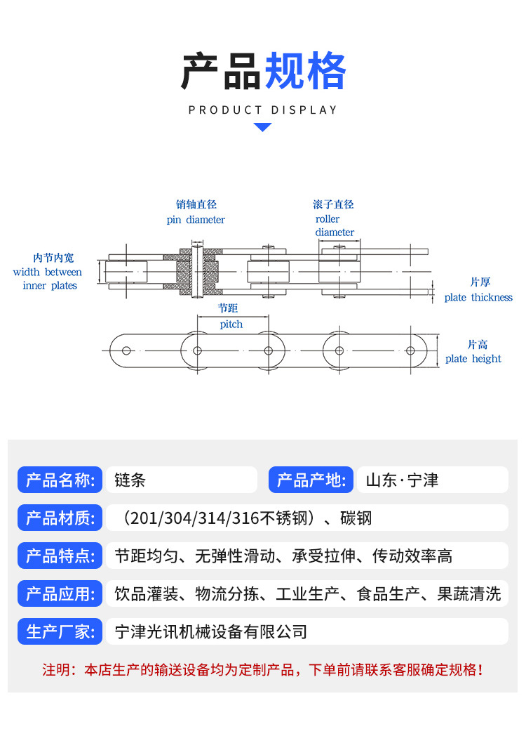 本网页所展示的有关【现货双侧弯板链条 碳钢链条单节距滚子输送链条节距6分带附件链条_链条_宁津光讯机械设备有限公司】的信息/图片/参数等由全球零部件网的会员【宁津光讯机械设备有限公司】提供,由全球零部件网会员【宁津光讯机械设备有限公司】自行对信息/图片/参数等的真实性、准确性和合法性负责,本平台(本网站)仅提供展示服务,请谨慎交易,因交易而产生的法律关系及法律纠纷由您自行协商解决,本平台(本网站)对此不承担任何责任。您在本网页可以浏览【现货双侧弯板链条 碳钢链条单节距滚子输送链条节距6分带附件链条_链条_宁津光讯机械设备有限公司】有关的信息/图片/价格等及提供【现货双侧弯板链条 碳钢链条单节距滚子输送链条节距6分带附件链条_链条_宁津光讯机械设备有限公司】的商家公司简介、江南(中国)等信息。