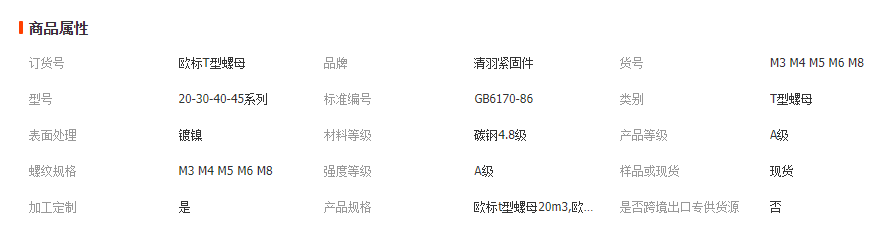 本网页所展示的有关【欧标铝型材t型螺母滑块螺母 锤头螺母 船型螺母20/45系列M4M5M6M8_螺母_乐清市柳市清羽紧固件批发部】的信息/图片/参数等由全球零部件网的会员【乐清市柳市清羽紧固件批发部】提供,由全球零部件网会员【乐清市柳市清羽紧固件批发部】自行对信息/图片/参数等的真实性、准确性和合法性负责,本平台(本网站)仅提供展示服务,请谨慎交易,因交易而产生的法律关系及法律纠纷由您自行协商解决,本平台(本网站)对此不承担任何责任。您在本网页可以浏览【欧标铝型材t型螺母滑块螺母 锤头螺母 船型螺母20/45系列M4M5M6M8_螺母_乐清市柳市清羽紧固件批发部】有关的信息/图片/价格等及提供【欧标铝型材t型螺母滑块螺母 锤头螺母 船型螺母20/45系列M4M5M6M8_螺母_乐清市柳市清羽紧固件批发部】的商家公司简介、江南(中国)等信息。