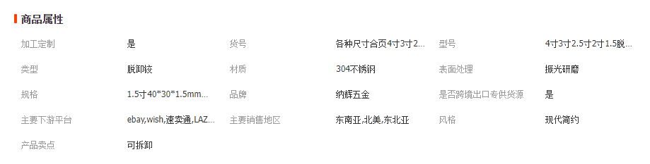 本网页所展示的有关【304不锈钢脱卸合页平开合页4寸3寸2.5寸2寸1.5寸工业门窗铰链重型_铰链_瑞安市纳辉五金厂】的信息/图片/参数等由全球零部件网的会员【瑞安市纳辉五金厂】提供,由全球零部件网会员【瑞安市纳辉五金厂】自行对信息/图片/参数等的真实性、准确性和合法性负责,本平台(本网站)仅提供展示服务,请谨慎交易,因交易而产生的法律关系及法律纠纷由您自行协商解决,本平台(本网站)对此不承担任何责任。您在本网页可以浏览【304不锈钢脱卸合页平开合页4寸3寸2.5寸2寸1.5寸工业门窗铰链重型_铰链_瑞安市纳辉五金厂】有关的信息/图片/价格等及提供【304不锈钢脱卸合页平开合页4寸3寸2.5寸2寸1.5寸工业门窗铰链重型_铰链_瑞安市纳辉五金厂】的商家公司简介、江南(中国)等信息。