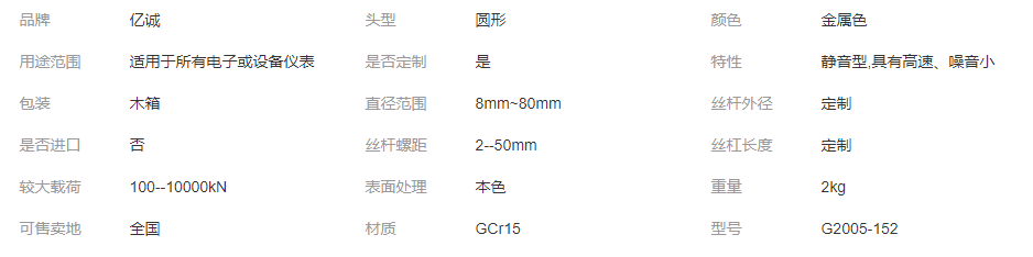 本网页所展示的有关【滚珠螺母 国产非标丝杠螺帽 精密丝杆螺 母套装定制 亿诚_螺母_济宁市亿诚滚动部件有限公司】的信息/图片/参数等由全球零部件网的会员【济宁市亿诚滚动部件有限公司】提供,由全球零部件网会员【济宁市亿诚滚动部件有限公司】自行对信息/图片/参数等的真实性、准确性和合法性负责,本平台(本网站)仅提供展示服务,请谨慎交易,因交易而产生的法律关系及法律纠纷由您自行协商解决,本平台(本网站)对此不承担任何责任。您在本网页可以浏览【滚珠螺母 国产非标丝杠螺帽 精密丝杆螺 母套装定制 亿诚_螺母_济宁市亿诚滚动部件有限公司】有关的信息/图片/价格等及提供【滚珠螺母 国产非标丝杠螺帽 精密丝杆螺 母套装定制 亿诚_螺母_济宁市亿诚滚动部件有限公司】的商家公司简介、江南(中国)等信息。