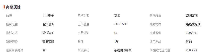 本网页所展示的有关【中村电子现货供应ce认证多种颜色防水1常开一常闭带线微动开关_电源开关及按钮_乐清市中村电子科技有限公司】的信息/图片/参数等由全球零部件网的会员【乐清市中村电子科技有限公司】提供,由全球零部件网会员【乐清市中村电子科技有限公司】自行对信息/图片/参数等的真实性、准确性和合法性负责,本平台(本网站)仅提供展示服务,请谨慎交易,因交易而产生的法律关系及法律纠纷由您自行协商解决,本平台(本网站)对此不承担任何责任。您在本网页可以浏览【中村电子现货供应ce认证多种颜色防水1常开一常闭带线微动开关_电源开关及按钮_乐清市中村电子科技有限公司】有关的信息/图片/价格等及提供【中村电子现货供应ce认证多种颜色防水1常开一常闭带线微动开关_电源开关及按钮_乐清市中村电子科技有限公司】的商家公司简介、江南(中国)等信息。
