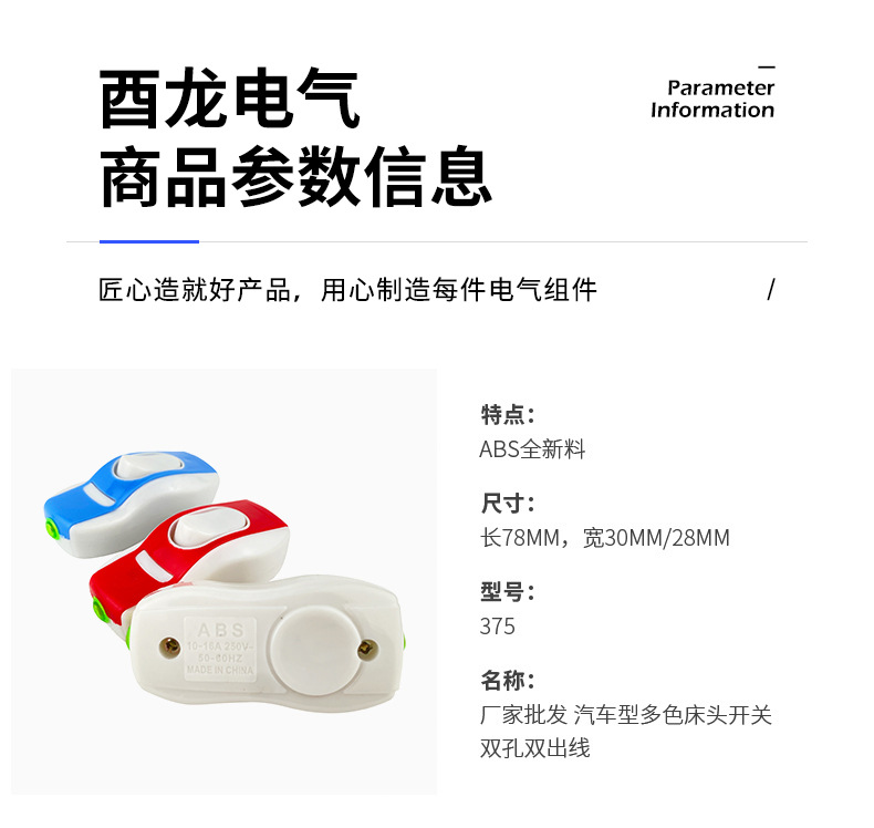 本网页所展示的有关【厂家批发汽车型多色床头开关双孔双出线 翘板按钮_电源开关及按钮_深圳市酉龙电气有限公司】的信息/图片/参数等由全球零部件网的会员【深圳市酉龙电气有限公司】提供,由全球零部件网会员【深圳市酉龙电气有限公司】自行对信息/图片/参数等的真实性、准确性和合法性负责,本平台(本网站)仅提供展示服务,请谨慎交易,因交易而产生的法律关系及法律纠纷由您自行协商解决,本平台(本网站)对此不承担任何责任。您在本网页可以浏览【厂家批发汽车型多色床头开关双孔双出线 翘板按钮_电源开关及按钮_深圳市酉龙电气有限公司】有关的信息/图片/价格等及提供【厂家批发汽车型多色床头开关双孔双出线 翘板按钮_电源开关及按钮_深圳市酉龙电气有限公司】的商家公司简介、江南(中国)等信息。
