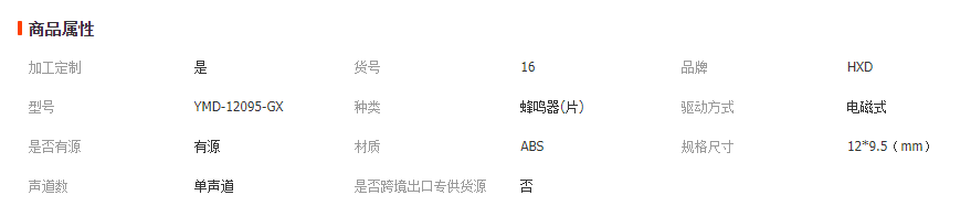 本网页所展示的有关【厂家直销电磁式蜂鸣器 YMD-12095-GX线长55毫米有源引线蜂鸣器_蜂鸣器_兴化市华兴机电有限公司】的信息/图片/参数等由全球零部件网的会员【兴化市华兴机电有限公司】提供,由全球零部件网会员【兴化市华兴机电有限公司】自行对信息/图片/参数等的真实性、准确性和合法性负责,本平台(本网站)仅提供展示服务,请谨慎交易,因交易而产生的法律关系及法律纠纷由您自行协商解决,本平台(本网站)对此不承担任何责任。您在本网页可以浏览【厂家直销电磁式蜂鸣器 YMD-12095-GX线长55毫米有源引线蜂鸣器_蜂鸣器_兴化市华兴机电有限公司】有关的信息/图片/价格等及提供【厂家直销电磁式蜂鸣器 YMD-12095-GX线长55毫米有源引线蜂鸣器_蜂鸣器_兴化市华兴机电有限公司】的商家公司简介、江南(中国)等信息。