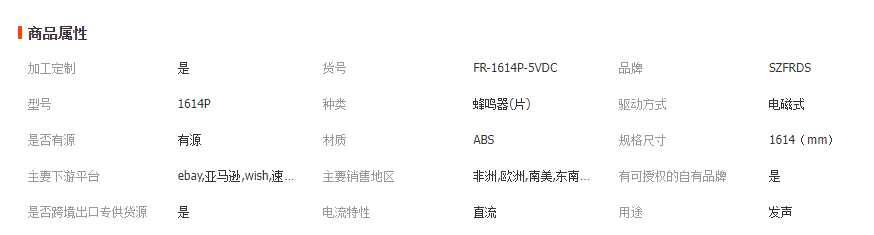 本网页所展示的有关【芙蓉电声 电磁式直流驱动 插针式峰鸣器 1614有源蜂鸣器5V BUZZER_蜂鸣器_深圳市芙蓉电声科技有限公司】的信息/图片/参数等由全球零部件网的会员【深圳市芙蓉电声科技有限公司】提供,由全球零部件网会员【深圳市芙蓉电声科技有限公司】自行对信息/图片/参数等的真实性、准确性和合法性负责,本平台(本网站)仅提供展示服务,请谨慎交易,因交易而产生的法律关系及法律纠纷由您自行协商解决,本平台(本网站)对此不承担任何责任。您在本网页可以浏览【芙蓉电声 电磁式直流驱动 插针式峰鸣器 1614有源蜂鸣器5V BUZZER_蜂鸣器_深圳市芙蓉电声科技有限公司】有关的信息/图片/价格等及提供【芙蓉电声 电磁式直流驱动 插针式峰鸣器 1614有源蜂鸣器5V BUZZER_蜂鸣器_深圳市芙蓉电声科技有限公司】的商家公司简介、江南(中国)等信息。