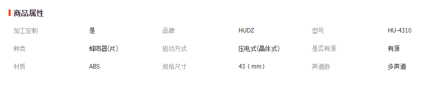 本网页所展示的有关【宏宇电子有源HU-4310蜂鸣器12V 24V 220V压电直流汽车专用连续声_蜂鸣器_兴化市宏宇电子有限公司】的信息/图片/参数等由全球零部件网的会员【兴化市宏宇电子有限公司】提供,由全球零部件网会员【兴化市宏宇电子有限公司】自行对信息/图片/参数等的真实性、准确性和合法性负责,本平台(本网站)仅提供展示服务,请谨慎交易,因交易而产生的法律关系及法律纠纷由您自行协商解决,本平台(本网站)对此不承担任何责任。您在本网页可以浏览【宏宇电子有源HU-4310蜂鸣器12V 24V 220V压电直流汽车专用连续声_蜂鸣器_兴化市宏宇电子有限公司】有关的信息/图片/价格等及提供【宏宇电子有源HU-4310蜂鸣器12V 24V 220V压电直流汽车专用连续声_蜂鸣器_兴化市宏宇电子有限公司】的商家公司简介、江南(中国)等信息。