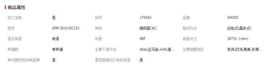 本网页所展示的有关【XHXDZ蜂鸣器3610有源DC12V/24V压电式讯响器报警器螺旋帽连续声_蜂鸣器_深圳市兴华鑫电子科技有限公司】的信息/图片/参数等由全球零部件网的会员【深圳市兴华鑫电子科技有限公司】提供,由全球零部件网会员【深圳市兴华鑫电子科技有限公司】自行对信息/图片/参数等的真实性、准确性和合法性负责,本平台(本网站)仅提供展示服务,请谨慎交易,因交易而产生的法律关系及法律纠纷由您自行协商解决,本平台(本网站)对此不承担任何责任。您在本网页可以浏览【XHXDZ蜂鸣器3610有源DC12V/24V压电式讯响器报警器螺旋帽连续声_蜂鸣器_深圳市兴华鑫电子科技有限公司】有关的信息/图片/价格等及提供【XHXDZ蜂鸣器3610有源DC12V/24V压电式讯响器报警器螺旋帽连续声_蜂鸣器_深圳市兴华鑫电子科技有限公司】的商家公司简介、江南(中国)等信息。