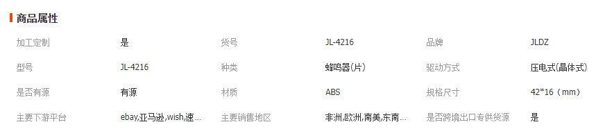 本网页所展示的有关【供应4216有源蜂鸣器 圆形压电式报警器12v24V连续声讯响器蜂鸣器_蜂鸣器_东莞市九乐电子有限公司】的信息/图片/参数等由全球零部件网的会员【东莞市九乐电子有限公司】提供,由全球零部件网会员【东莞市九乐电子有限公司】自行对信息/图片/参数等的真实性、准确性和合法性负责,本平台(本网站)仅提供展示服务,请谨慎交易,因交易而产生的法律关系及法律纠纷由您自行协商解决,本平台(本网站)对此不承担任何责任。您在本网页可以浏览【供应4216有源蜂鸣器 圆形压电式报警器12v24V连续声讯响器蜂鸣器_蜂鸣器_东莞市九乐电子有限公司】有关的信息/图片/价格等及提供【供应4216有源蜂鸣器 圆形压电式报警器12v24V连续声讯响器蜂鸣器_蜂鸣器_东莞市九乐电子有限公司】的商家公司简介、江南(中国)等信息。