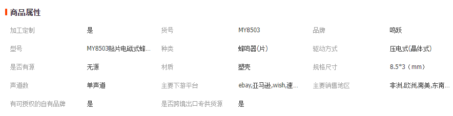 本网页所展示的有关【蜂鸣器批发8.5*3mm贴片电磁式蜂鸣器 无源式超薄电磁贴片蜂鸣器_蜂鸣器_东莞市鸣跃电子科技有限公司】的信息/图片/参数等由全球零部件网的会员【东莞市鸣跃电子科技有限公司】提供,由全球零部件网会员【东莞市鸣跃电子科技有限公司】自行对信息/图片/参数等的真实性、准确性和合法性负责,本平台(本网站)仅提供展示服务,请谨慎交易,因交易而产生的法律关系及法律纠纷由您自行协商解决,本平台(本网站)对此不承担任何责任。您在本网页可以浏览【蜂鸣器批发8.5*3mm贴片电磁式蜂鸣器 无源式超薄电磁贴片蜂鸣器_蜂鸣器_东莞市鸣跃电子科技有限公司】有关的信息/图片/价格等及提供【蜂鸣器批发8.5*3mm贴片电磁式蜂鸣器 无源式超薄电磁贴片蜂鸣器_蜂鸣器_东莞市鸣跃电子科技有限公司】的商家公司简介、江南(中国)等信息。
