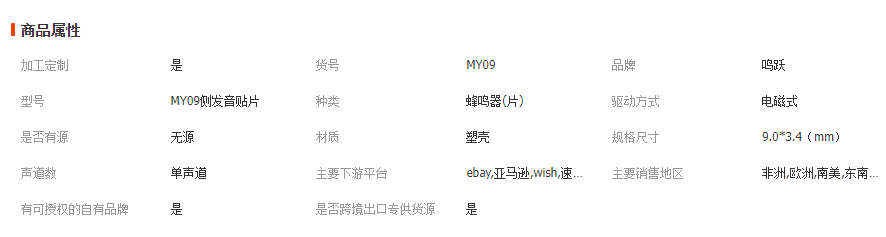 本网页所展示的有关【厂家直销9.0*3.4mm 8Ω 1.5V侧发音贴片式电磁蜂鸣器 电子设备用_蜂鸣器_东莞市鸣跃电子科技有限公司】的信息/图片/参数等由全球零部件网的会员【东莞市鸣跃电子科技有限公司】提供,由全球零部件网会员【东莞市鸣跃电子科技有限公司】自行对信息/图片/参数等的真实性、准确性和合法性负责,本平台(本网站)仅提供展示服务,请谨慎交易,因交易而产生的法律关系及法律纠纷由您自行协商解决,本平台(本网站)对此不承担任何责任。您在本网页可以浏览【厂家直销9.0*3.4mm 8Ω 1.5V侧发音贴片式电磁蜂鸣器 电子设备用_蜂鸣器_东莞市鸣跃电子科技有限公司】有关的信息/图片/价格等及提供【厂家直销9.0*3.4mm 8Ω 1.5V侧发音贴片式电磁蜂鸣器 电子设备用_蜂鸣器_东莞市鸣跃电子科技有限公司】的商家公司简介、江南(中国)等信息。