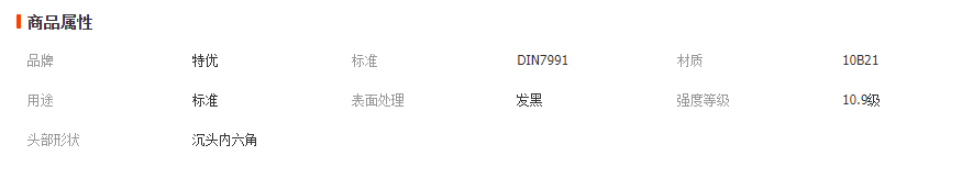 本网页所展示的有关【(DIN7991)碳钢10.9级发黑高强度沉头内六角螺丝批发 含税价_螺丝_温州市特优紧固件有限公司】的信息/图片/参数等由全球零部件网的会员【温州市特优紧固件有限公司】提供,由全球零部件网会员【温州市特优紧固件有限公司】自行对信息/图片/参数等的真实性、准确性和合法性负责,本平台(本网站)仅提供展示服务,请谨慎交易,因交易而产生的法律关系及法律纠纷由您自行协商解决,本平台(本网站)对此不承担任何责任。您在本网页可以浏览【(DIN7991)碳钢10.9级发黑高强度沉头内六角螺丝批发 含税价_螺丝_温州市特优紧固件有限公司】有关的信息/图片/价格等及提供【(DIN7991)碳钢10.9级发黑高强度沉头内六角螺丝批发 含税价_螺丝_温州市特优紧固件有限公司】的商家公司简介、江南(中国)等信息。