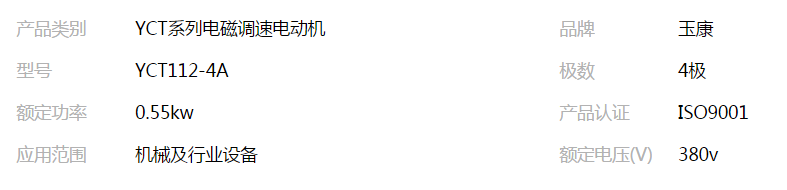 立即发布求购意向本网页所展示的有关【供应供应河北玉康铜线国标YCT系列电磁调速电机 YCT112-4A 0.55kw_交流发电机及相关零件_河北泊头玉康电机制造有限公司】的信息/图片/参数等由全球零部件网的会员【河北泊头玉康电机制造有限公司】提供,由全球零部件网会员【河北泊头玉康电机制造有限公司】自行对信息/图片/参数等的真实性、准确性和合法性负责,本平台(本网站)仅提供展示服务,请谨慎交易,因交易而产生的法律关系及法律纠纷由您自行协商解决,本平台(本网站)对此不承担任何责任。您在本网页可以浏览【供应供应河北玉康铜线国标YCT系列电磁调速电机 YCT112-4A 0.55kw_交流发电机及相关零件_河北泊头玉康电机制造有限公司】有关的信息/图片/价格等及提供【供应供应河北玉康铜线国标YCT系列电磁调速电机 YCT112-4A 0.55kw_交流发电机及相关零件_河北泊头玉康电机制造有限公司】的商家公司简介、江南(中国)等信息。