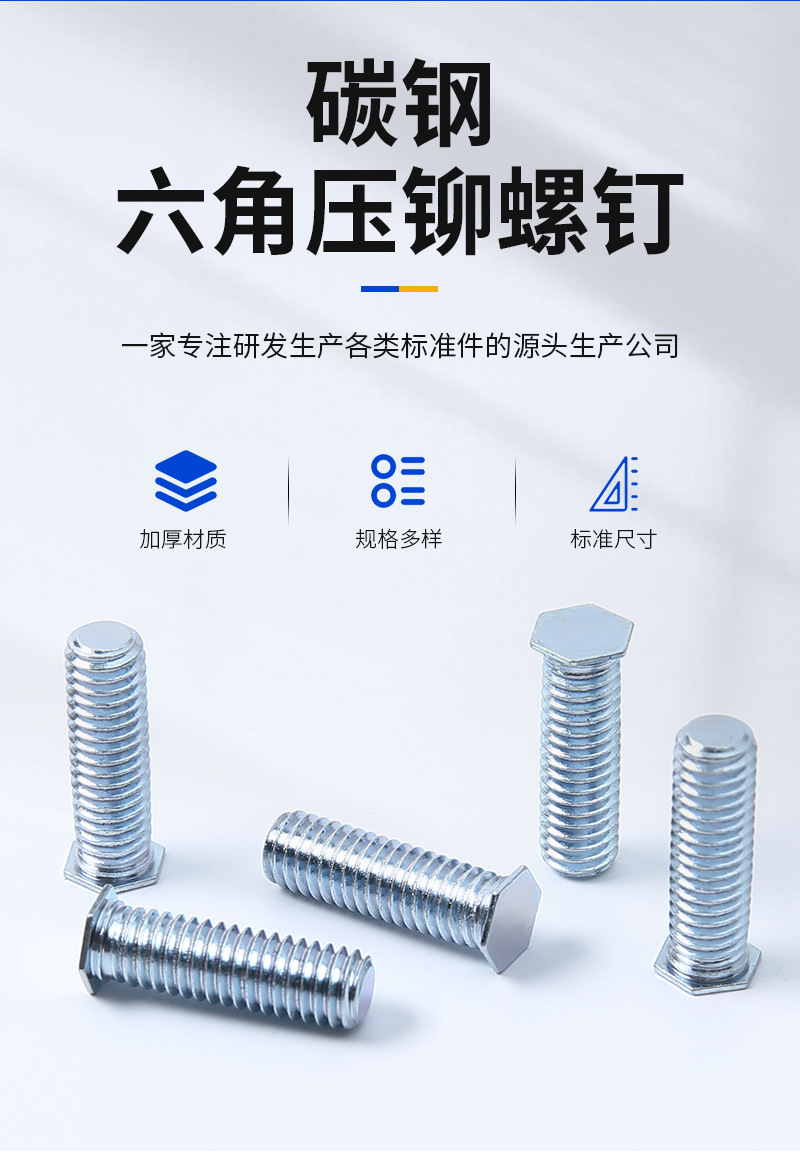 本网页所展示的有关【碳钢六角压铆螺钉 压铆螺钉 钣金压板螺丝机柜螺丝_螺钉_温州昊冉标准件有限公司】的信息/图片/参数等由全球零部件网的会员【温州昊冉标准件有限公司】提供,由全球零部件网会员【温州昊冉标准件有限公司】自行对信息/图片/参数等的真实性、准确性和合法性负责,本平台(本网站)仅提供展示服务,请谨慎交易,因交易而产生的法律关系及法律纠纷由您自行协商解决,本平台(本网站)对此不承担任何责任。您在本网页可以浏览【碳钢六角压铆螺钉 压铆螺钉 钣金压板螺丝机柜螺丝_螺钉_温州昊冉标准件有限公司】有关的信息/图片/价格等及提供【碳钢六角压铆螺钉 压铆螺钉 钣金压板螺丝机柜螺丝_螺钉_温州昊冉标准件有限公司】的商家公司简介、江南(中国)等信息。