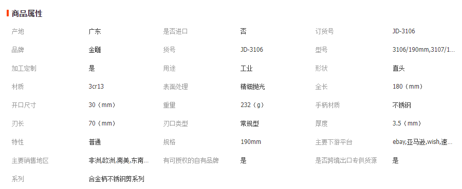 本网页所展示的有关【金雕 全不锈钢厨房剪 海鲜剪 家用剪 鸡骨剪 鱼骨剪 不锈钢剪_剪刀类_佛山市利雕五金工具有限公司】的信息/图片/参数等由全球零部件网的会员【佛山市利雕五金工具有限公司】提供,由全球零部件网会员【佛山市利雕五金工具有限公司】自行对信息/图片/参数等的真实性、准确性和合法性负责,本平台(本网站)仅提供展示服务,请谨慎交易,因交易而产生的法律关系及法律纠纷由您自行协商解决,本平台(本网站)对此不承担任何责任。您在本网页可以浏览【金雕 全不锈钢厨房剪 海鲜剪 家用剪 鸡骨剪 鱼骨剪 不锈钢剪_剪刀类_佛山市利雕五金工具有限公司】有关的信息/图片/价格等及提供【金雕 全不锈钢厨房剪 海鲜剪 家用剪 鸡骨剪 鱼骨剪 不锈钢剪_剪刀类_佛山市利雕五金工具有限公司】的商家公司简介、江南(中国)等信息。