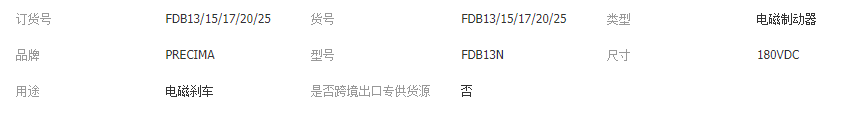德国PRECIMA普瑞玛安全加压电磁制动器FDB08 FDB10 FDB13 FDB15 FDB20 FDB23 FDB26 FDB30