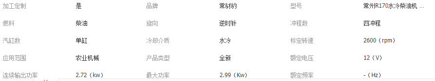 本网页所展示的有关【中国常州R170水冷柴油机 船用农用单杠水冷电启动4马力手摇发动机_发动机_常州飞栋机械配件有限公司】的信息/图片/参数等由全球零部件网的会员【常州飞栋机械配件有限公司】提供,由全球零部件网会员【常州飞栋机械配件有限公司】自行对信息/图片/参数等的真实性、准确性和合法性负责,本平台(本网站)仅提供展示服务,请谨慎交易,因交易而产生的法律关系及法律纠纷由您自行协商解决,本平台(本网站)对此不承担任何责任。您在本网页可以浏览【中国常州R170水冷柴油机 船用农用单杠水冷电启动4马力手摇发动机_发动机_常州飞栋机械配件有限公司】有关的信息/图片/价格等及提供【中国常州R170水冷柴油机 船用农用单杠水冷电启动4马力手摇发动机_发动机_常州飞栋机械配件有限公司】的商家公司简介、江南(中国)等信息。