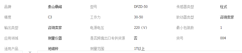 本网页所展示的有关【鼎峰衡器柱式称重传感器 数字式 模拟称重传感器 地磅传感器_传感器_泰安市泰山鼎峰衡器有限公司】的信息/图片/参数等由全球零部件网的会员【泰安市泰山鼎峰衡器有限公司】提供,由全球零部件网会员【泰安市泰山鼎峰衡器有限公司】自行对信息/图片/参数等的真实性、准确性和合法性负责,本平台(本网站)仅提供展示服务,请谨慎交易,因交易而产生的法律关系及法律纠纷由您自行协商解决,本平台(本网站)对此不承担任何责任。您在本网页可以浏览【鼎峰衡器柱式称重传感器 数字式 模拟称重传感器 地磅传感器_传感器_泰安市泰山鼎峰衡器有限公司】有关的信息/图片/价格等及提供【鼎峰衡器柱式称重传感器 数字式 模拟称重传感器 地磅传感器_传感器_泰安市泰山鼎峰衡器有限公司】的商家公司简介、江南(中国)等信息。