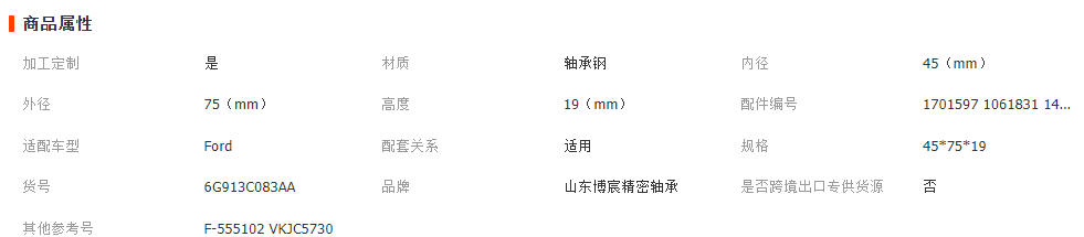 本网页所展示的有关【适用于福特汽车传动轴1701597 Ford前桥驱动轴轴承 6G913C083AA_轴承_山东博宸精密轴承有限公司】的信息/图片/参数等由全球零部件网的会员【山东博宸精密轴承有限公司】提供,由全球零部件网会员【山东博宸精密轴承有限公司】自行对信息/图片/参数等的真实性、准确性和合法性负责,本平台(本网站)仅提供展示服务,请谨慎交易,因交易而产生的法律关系及法律纠纷由您自行协商解决,本平台(本网站)对此不承担任何责任。您在本网页可以浏览【适用于福特汽车传动轴1701597 Ford前桥驱动轴轴承 6G913C083AA_轴承_山东博宸精密轴承有限公司】有关的信息/图片/价格等及提供【适用于福特汽车传动轴1701597 Ford前桥驱动轴轴承 6G913C083AA_轴承_山东博宸精密轴承有限公司】的商家公司简介、江南(中国)等信息。