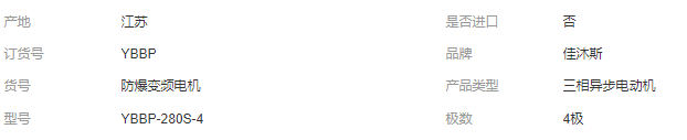 本网页所展示的有关【佳沐斯电机YBBP防爆变频电机 防爆电机 三相异步电机定制电压_电机_佳沐斯防爆电机(江苏)股份有限公司】的信息/图片/参数等由全球零部件网的会员【佳沐斯防爆电机(江苏)股份有限公司】提供,由全球零部件网会员【佳沐斯防爆电机(江苏)股份有限公司】自行对信息/图片/参数等的真实性、准确性和合法性负责,本平台(本网站)仅提供展示服务,请谨慎交易,因交易而产生的法律关系及法律纠纷由您自行协商解决,本平台(本网站)对此不承担任何责任。您在本网页可以浏览【佳沐斯电机YBBP防爆变频电机 防爆电机 三相异步电机定制电压_电机_佳沐斯防爆电机(江苏)股份有限公司】有关的信息/图片/价格等及提供【佳沐斯电机YBBP防爆变频电机 防爆电机 三相异步电机定制电压_电机_佳沐斯防爆电机(江苏)股份有限公司】的商家公司简介、江南(中国)等信息。