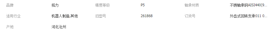本网页所展示的有关【旋转转盘回转支撑轴承011 012齿轮回转驱动外齿式回转支承轴承_轴承_沧州拓力机械制造有限公司】的信息/图片/参数等由全球零部件网的会员【沧州拓力机械制造有限公司】提供,由全球零部件网会员【沧州拓力机械制造有限公司】自行对信息/图片/参数等的真实性、准确性和合法性负责,本平台(本网站)仅提供展示服务,请谨慎交易,因交易而产生的法律关系及法律纠纷由您自行协商解决,本平台(本网站)对此不承担任何责任。您在本网页可以浏览【旋转转盘回转支撑轴承011 012齿轮回转驱动外齿式回转支承轴承_轴承_沧州拓力机械制造有限公司】有关的信息/图片/价格等及提供【旋转转盘回转支撑轴承011 012齿轮回转驱动外齿式回转支承轴承_轴承_沧州拓力机械制造有限公司】的商家公司简介、江南(中国)等信息。