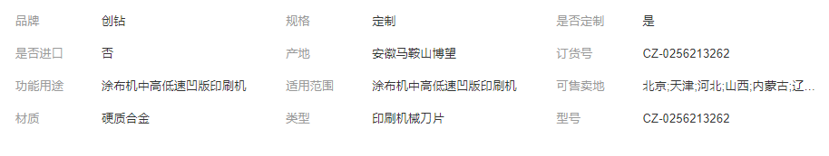 本网页所展示的有关【创钻 油墨刮刀 不锈钢刮墨刀 涂布机中高低速凹版印刷机 耐用_刀具、夹具_马鞍山市创钻机械科技有限公司】的信息/图片/参数等由全球零部件网的会员【马鞍山市创钻机械科技有限公司】提供,由全球零部件网会员【马鞍山市创钻机械科技有限公司】自行对信息/图片/参数等的真实性、准确性和合法性负责,本平台(本网站)仅提供展示服务,请谨慎交易,因交易而产生的法律关系及法律纠纷由您自行协商解决,本平台(本网站)对此不承担任何责任。您在本网页可以浏览【创钻 油墨刮刀 不锈钢刮墨刀 涂布机中高低速凹版印刷机 耐用_刀具、夹具_马鞍山市创钻机械科技有限公司】有关的信息/图片/价格等及提供【创钻 油墨刮刀 不锈钢刮墨刀 涂布机中高低速凹版印刷机 耐用_刀具、夹具_马鞍山市创钻机械科技有限公司】的商家公司简介、江南(中国)等信息。