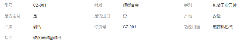 本网页所展示的有关【全自动煎药机刀片 煎.药机包装机刀 枕式包装齿刀 硬度高耐磨耐用_刀具、夹具_马鞍山市创钻机械科技有限公司】的信息/图片/参数等由全球零部件网的会员【马鞍山市创钻机械科技有限公司】提供,由全球零部件网会员【马鞍山市创钻机械科技有限公司】自行对信息/图片/参数等的真实性、准确性和合法性负责,本平台(本网站)仅提供展示服务,请谨慎交易,因交易而产生的法律关系及法律纠纷由您自行协商解决,本平台(本网站)对此不承担任何责任。您在本网页可以浏览【全自动煎药机刀片 煎.药机包装机刀 枕式包装齿刀 硬度高耐磨耐用_刀具、夹具_马鞍山市创钻机械科技有限公司】有关的信息/图片/价格等及提供【全自动煎药机刀片 煎.药机包装机刀 枕式包装齿刀 硬度高耐磨耐用_刀具、夹具_马鞍山市创钻机械科技有限公司】的商家公司简介、江南(中国)等信息。