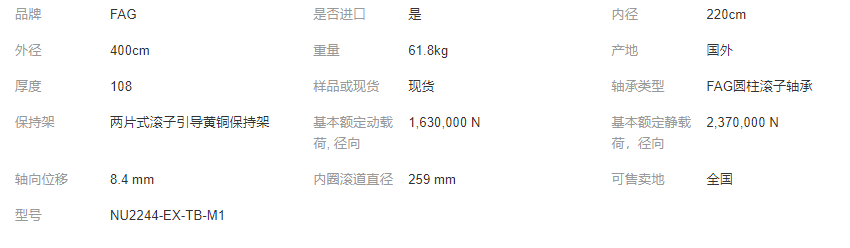 本网页所展示的有关【FAG两片式滚子引导黄铜保持架圆柱滚子轴承NU2244-EX-TB-M1_轴承_安徽捷越传动科技有限公司】的信息/图片/参数等由全球零部件网的会员【安徽捷越传动科技有限公司】提供,由全球零部件网会员【安徽捷越传动科技有限公司】自行对信息/图片/参数等的真实性、准确性和合法性负责,本平台(本网站)仅提供展示服务,请谨慎交易,因交易而产生的法律关系及法律纠纷由您自行协商解决,本平台(本网站)对此不承担任何责任。您在本网页可以浏览【FAG两片式滚子引导黄铜保持架圆柱滚子轴承NU2244-EX-TB-M1_轴承_安徽捷越传动科技有限公司】有关的信息/图片/价格等及提供【FAG两片式滚子引导黄铜保持架圆柱滚子轴承NU2244-EX-TB-M1_轴承_安徽捷越传动科技有限公司】的商家公司简介、江南(中国)等信息。