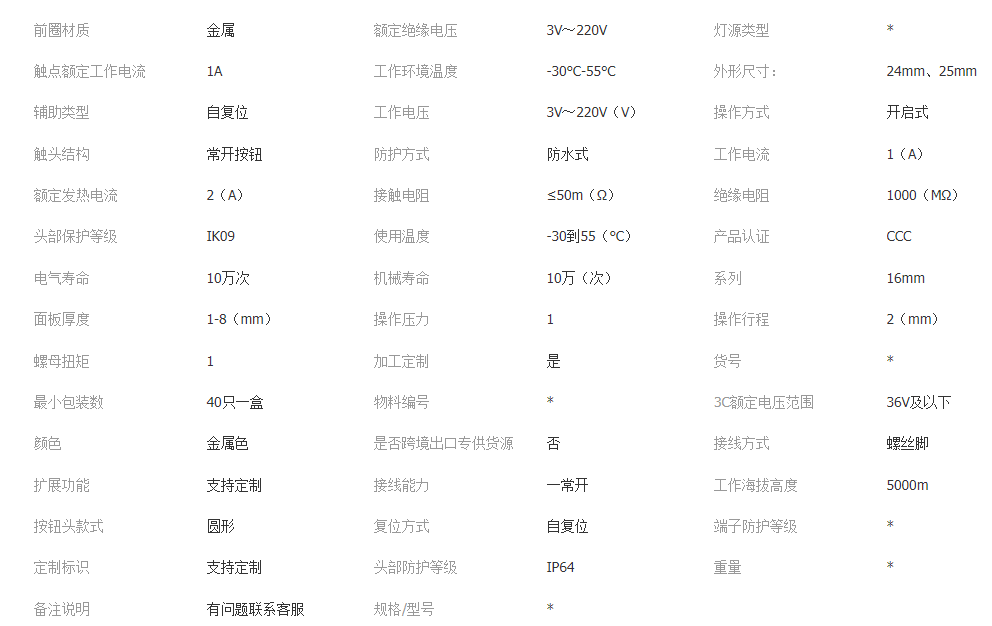 本网页所展示的有关【16mm金属按钮开关圆形防水喇叭、门禁开关自复位按键开关_压力开关_乐清市斌利电气有限公司】的信息/图片/参数等由全球零部件网的会员【乐清市斌利电气有限公司】提供,由全球零部件网会员【乐清市斌利电气有限公司】自行对信息/图片/参数等的真实性、准确性和合法性负责,本平台(本网站)仅提供展示服务,请谨慎交易,因交易而产生的法律关系及法律纠纷由您自行协商解决,本平台(本网站)对此不承担任何责任。您在本网页可以浏览【16mm金属按钮开关圆形防水喇叭、门禁开关自复位按键开关_压力开关_乐清市斌利电气有限公司】有关的信息/图片/价格等及提供【16mm金属按钮开关圆形防水喇叭、门禁开关自复位按键开关_压力开关_乐清市斌利电气有限公司】的商家公司简介、江南(中国)等信息。