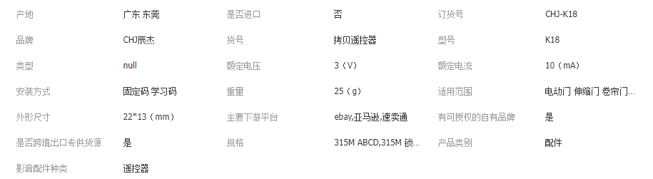 本网页所展示的有关【辰杰批发U型拷贝无线遥控器433对拷电动车库门卷帘门复 制遥控钥匙_遥控IC_深圳市辰杰电子有限公司】的信息/图片/参数等由全球零部件网的会员【深圳市辰杰电子有限公司】提供,由全球零部件网会员【深圳市辰杰电子有限公司】自行对信息/图片/参数等的真实性、准确性和合法性负责,本平台(本网站)仅提供展示服务,请谨慎交易,因交易而产生的法律关系及法律纠纷由您自行协商解决,本平台(本网站)对此不承担任何责任。您在本网页可以浏览【辰杰批发U型拷贝无线遥控器433对拷电动车库门卷帘门复 制遥控钥匙_遥控IC_深圳市辰杰电子有限公司】有关的信息/图片/价格等及提供【辰杰批发U型拷贝无线遥控器433对拷电动车库门卷帘门复 制遥控钥匙_遥控IC_深圳市辰杰电子有限公司】的商家公司简介、江南(中国)等信息。