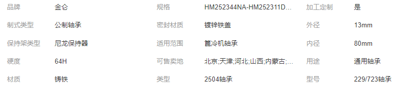 本网页所展示的有关【2504轴承 229/723轴承 HM252344NA-HM252311D轴承 篦冷机轴承_轴承_临清市金仑轴承有限公司】的信息/图片/参数等由全球零部件网的会员【临清市金仑轴承有限公司】提供,由全球零部件网会员【临清市金仑轴承有限公司】自行对信息/图片/参数等的真实性、准确性和合法性负责,本平台(本网站)仅提供展示服务,请谨慎交易,因交易而产生的法律关系及法律纠纷由您自行协商解决,本平台(本网站)对此不承担任何责任。您在本网页可以浏览【2504轴承 229/723轴承 HM252344NA-HM252311D轴承 篦冷机轴承_轴承_临清市金仑轴承有限公司】有关的信息/图片/价格等及提供【2504轴承 229/723轴承 HM252344NA-HM252311D轴承 篦冷机轴承_轴承_临清市金仑轴承有限公司】的商家公司简介、江南(中国)等信息。