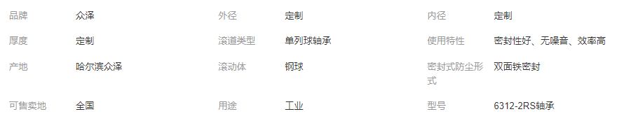 本网页所展示的有关【众泽深沟球轴承 6312-2RS轴承 中华轴承尺寸型号_深沟球轴承_聊城市众泽轴承有限公司】的信息/图片/参数等由全球零部件网的会员【聊城市众泽轴承有限公司】提供,由全球零部件网会员【聊城市众泽轴承有限公司】自行对信息/图片/参数等的真实性、准确性和合法性负责,本平台(本网站)仅提供展示服务,请谨慎交易,因交易而产生的法律关系及法律纠纷由您自行协商解决,本平台(本网站)对此不承担任何责任。您在本网页可以浏览【众泽深沟球轴承 6312-2RS轴承 中华轴承尺寸型号_深沟球轴承_聊城市众泽轴承有限公司】有关的信息/图片/价格等及提供【众泽深沟球轴承 6312-2RS轴承 中华轴承尺寸型号_深沟球轴承_聊城市众泽轴承有限公司】的商家公司简介、江南(中国)等信息。