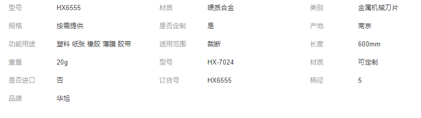 本网页所展示的有关【华旭 铲钨钢锋钢高速钢 异形刀片 工业用刀具非标定制 HX6555_刀具、夹具_南京华旭机械有限公司】的信息/图片/参数等由全球零部件网的会员【南京华旭机械有限公司】提供,由全球零部件网会员【南京华旭机械有限公司】自行对信息/图片/参数等的真实性、准确性和合法性负责,本平台(本网站)仅提供展示服务,请谨慎交易,因交易而产生的法律关系及法律纠纷由您自行协商解决,本平台(本网站)对此不承担任何责任。您在本网页可以浏览【华旭 铲钨钢锋钢高速钢 异形刀片 工业用刀具非标定制 HX6555_刀具、夹具_南京华旭机械有限公司】有关的信息/图片/价格等及提供【华旭 铲钨钢锋钢高速钢 异形刀片 工业用刀具非标定制 HX6555_刀具、夹具_南京华旭机械有限公司】的商家公司简介、江南(中国)等信息。