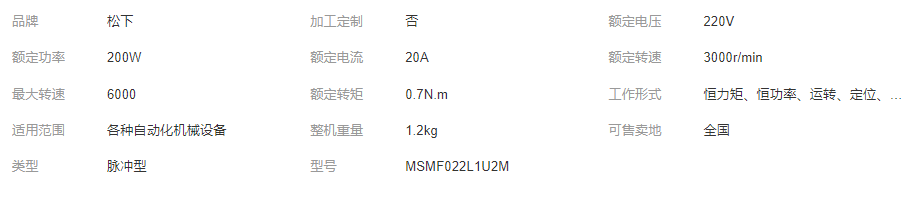 1.松下伺服电机的功率有50W-22KW,能满足客户各种功率要求。
